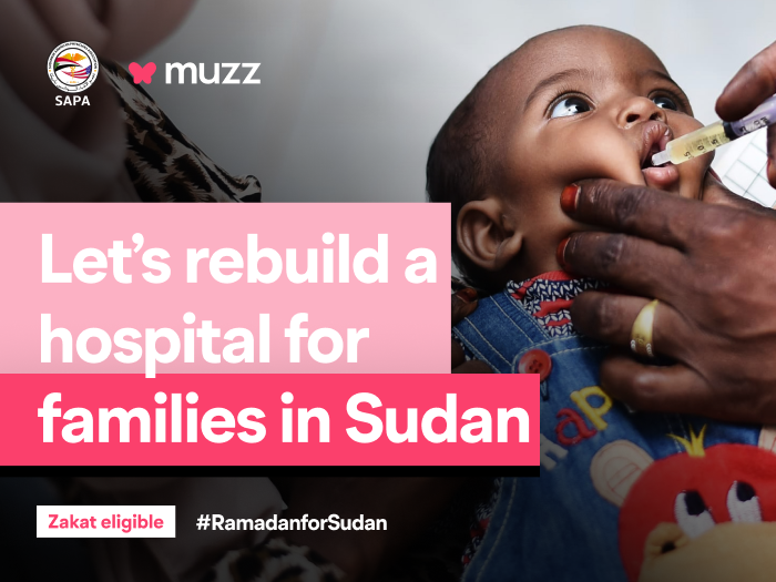 Dalam keseronokkan kita mencuba pelbagai juadah, kanak-kanak di Sudan terseksa dengan kelaparan. Muzz bekerjasama dengan SAPA (Sudanese American Physicians Association) untuk membantu membina hospital di Tawila, Sudan. 30% daripada kanak-kanak dibawah usia lima (5) tahun dalam keadaan Malnutrisi Akut Teruk. Setiap manusia berhak untuk mendapatkan kesihatan yang sempurna, sama juga dengan mereka.