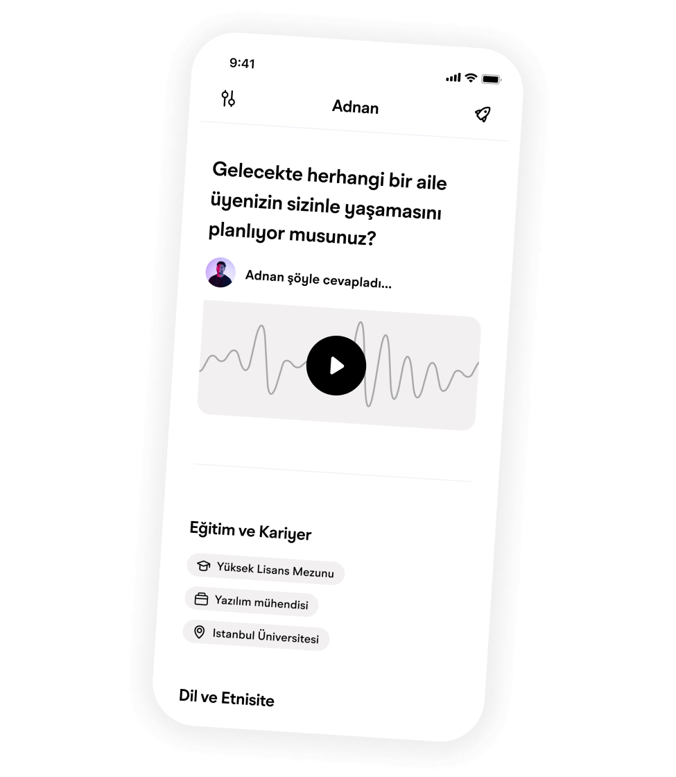 Profilinize Açılış cümleleri eklemek, eşleşmelerinize ilk mesajlarında yalnızca Selam demekten daha fazlasını belirtir. Evlilikle ilgili görüşleri, eğlenmek için ne yaptıkları veya inançlarını nasıl uyguladıkları gibi önemli şeyleri hızlıca öğrenebilirsiniz.